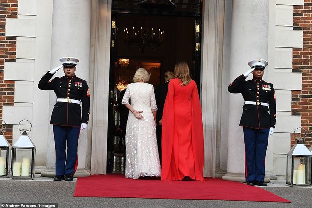 Tổng thống Mỹ Donald Trump và Đệ nhất phu nhân Melania đứng tại Winfield House, dinh thự ở thủ đô London của Đại sứ Mỹ tại Anh, để chờ đón Thái tử Charles và Công nương Camilla.