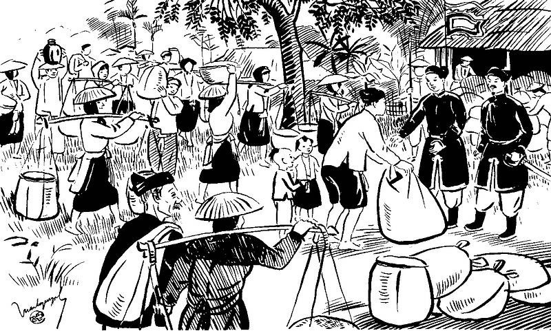 Nộp thóc vào kho lương triều đình. (Hình minh họa- Nguồn: violet.vn).