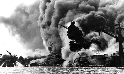 Tàu USS Arizona bốc cháy sau khi trúng bom của Nhật tại Trân Châu Cảng, Hawaii ngày 7/12/1941. Ảnh: US Navy.