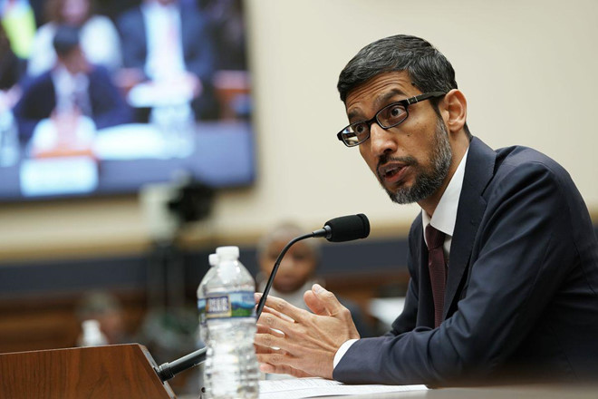 CEO của Google, Sundar Pichai trong phiên điều trần ngày 11/12/2018 trước quốc hội Mỹ. Ảnh: Vox.