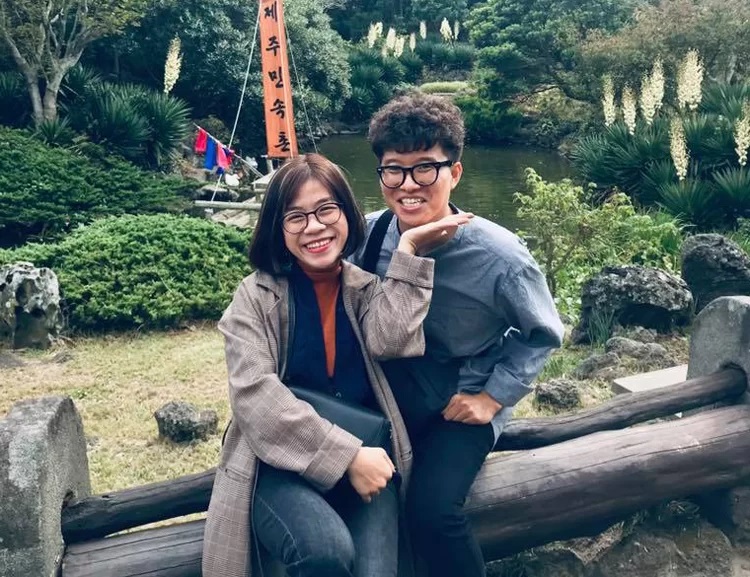 Hai vợ chồng Thái Hòa- Sejun trong chuyến đi Hàn Quốc ra mắt nhà chồng năm 2017. Ảnh: T.H.