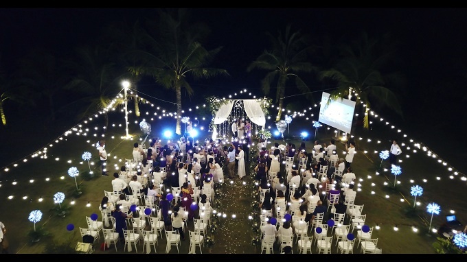 Đám cưới cổ tích của cặp đôi ở tuổi xế chiều do các con tự lên kế hoạch tổ chức bên bờ biển Thanh Hóa. Số lượng khách mời hạn chế, phần lớn là người thân, bạn bè của hai bên.