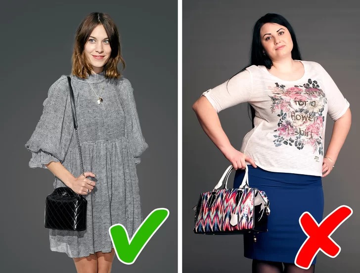 Bạn không cần phải chạy theo các xu hướng thời trang, quan trọng nhất là tìm được những trang phục khắc phục được những khiếm khuyết và tôn lên những ưu điểm của cơ thể. Ví dụ nếu bạn nhỏ, không nên mặc quần áo maxi quá khổ. Nếu bụng hơi to, bạn có thể mặc váy xòe che bớt bụng.