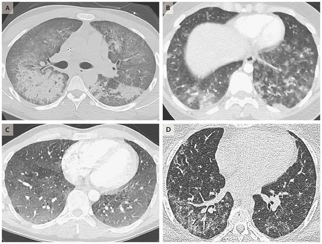 Hình ảnh scan phổi của 4 bệnh nhân tuổi từ 19 đến 49, cho thấy dấu hiệu tổn thương do sử dụng thuốc lá điện tử. Ảnh: New England Journal of Medicine.