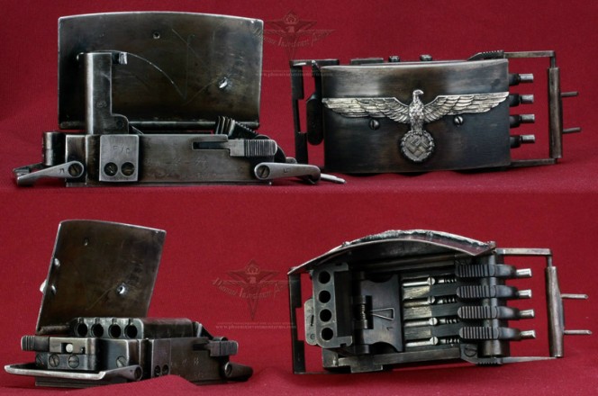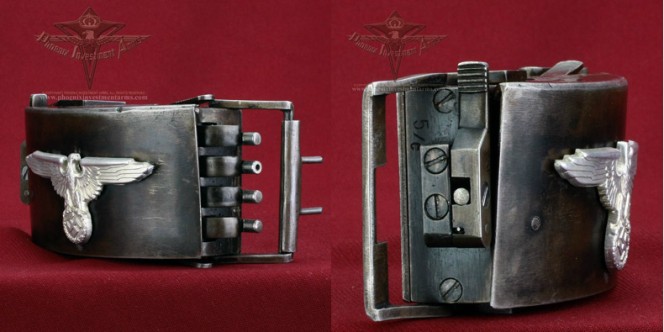 Thiết bị này được gọi là SS-Waffenakademie Koppelschloßpistole hoặc súng dây lưng. Và đúng như tên gọi, nó thực sự chứa một cơ chế bắn đặc biệt bên trong. Đức quốc xã chế tạo chúng nhằm trang bị cho các lực lượng an ninh và tình báo mật như SS và Gestapo.