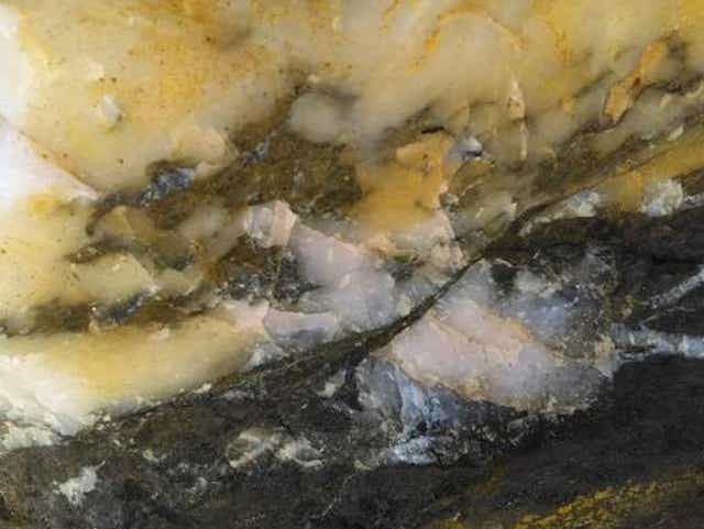 Cận cảnh những đường vân thạch anh trắng trên bề mặt tảng đá