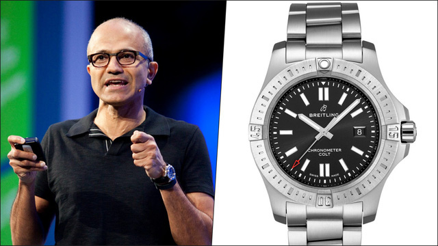 Satya Nadella được bổ nhiệm làm CEO của tập đoàn công nghệ Microsoft vào năm 2014 và đến nay đã làm việc tại công ty này được khoảng 25 năm. Ông từng được chụp ảnh đang đeo chiếc đồng hồ Breitling Colt Automatic, có giá bán lẻ 3.620 USD.