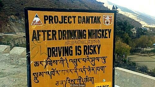 Biển báo thường viết bằng tiếng Anh, đôi khi có cả tiếng Dzhongkha của Bhutan và đều được vẽ tay. Chúng không có dấu nhưng dễ nhớ do ngắn gọn.
