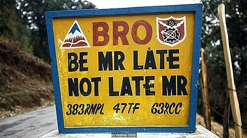 Trong những năm qua, Tổ chức Đường bộ Biên giới đã xây dựng và bảo trì đường sá ở các quốc gia lân cận Ấn Độ bao gồm Afghanistan, Myanmar và Sri Lanka. Ngày nay, họ chủ yếu sử dụng các lao động địa phương, nhưng trong lịch sử, nhiều người Ấn Độ đảm nhận công việc khó khăn và nguy hiểm này. Khiếu hài hước của họ thách thức hoàn cảnh khó khăn, điều đó thể hiện rõ trên các biển báo và nhiệm vụ được hoàn thành.