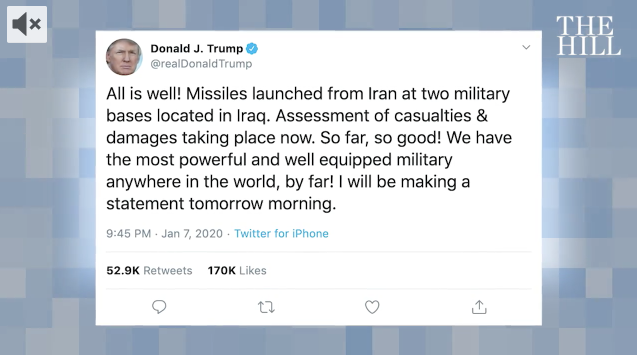 Old  Default Phản hồi trước cuộc tấn công bằng hỏa tiễn của Iran, Tổng thống Trump nói rằng “mọi việc đều ổn”