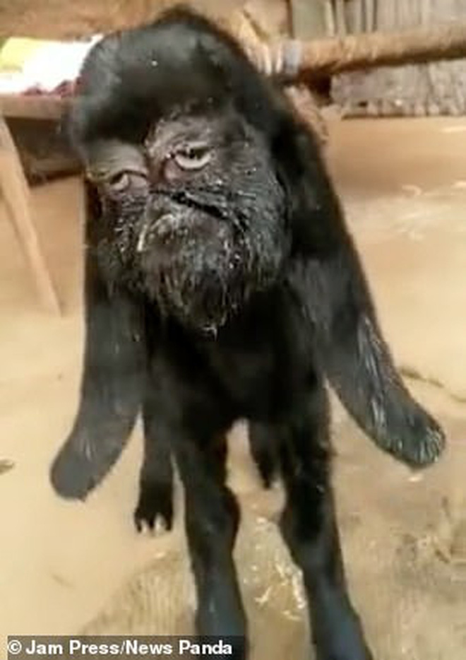 Khuôn mặt y xì đúc con người của chú dê bị đột biến