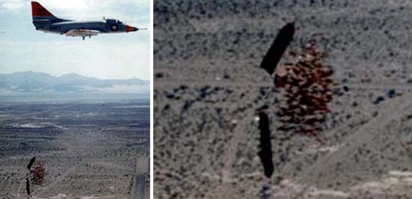 Các loại bom chùm dạng này thường được Mỹ sử dụng để tấn công đường mòn Trường Sơn, có thể gây thiệt hại trong bán kính rộng vài kilomét tuy nhiêu phụ thuộc nhiều vào yếu tố khách quan như gió, thời tiết,... nên có độ chính xác không cao. Nguồn ảnh: Tah.