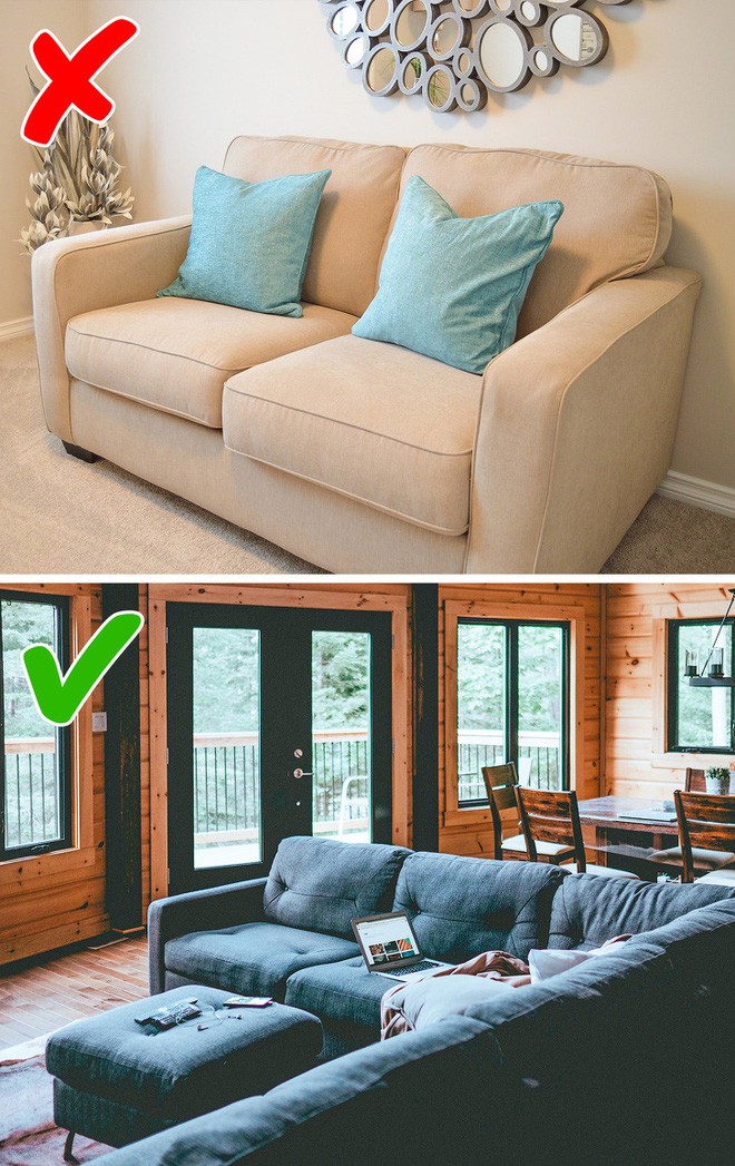 Có quá nhiều khe hở tường sẽ gây khó khăn cho việc sử dụng không gian tường, làm căn phòng trở nên xấu xí lại kém chức năng. Thay vào đó, các chuyên gia đề nghị đặt các mảnh đồ nội thất gần nhau hơn.