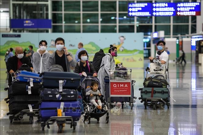 Người dân đeo khẩu trang phòng lây nhiễm COVID-19 tại sân bay ở Hong Kong, Trung Quốc. Ảnh: AFP/TTXVN