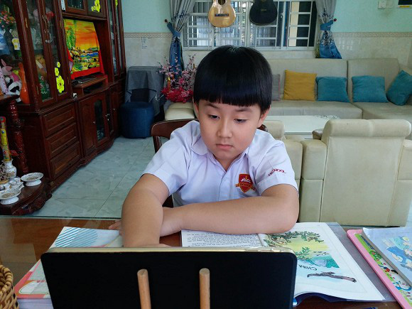 Trước đó, Lê Phương cũng khoe hình ảnh con trai đầu chăm chỉ học online tại nhà cùng bạn bè. Dù là không đến lớp nhưng bé Cà Pháo rất ngoan và giữ đúc kỉ luật. Cậu bé diện đồng phục chỉnh tề và ngồi vào bàn học hăng say nghe giảng và giơ tay phát biểu mỗi khi cần.