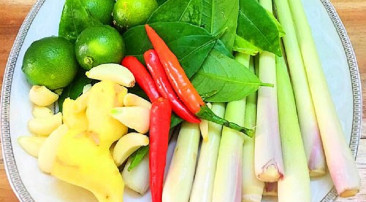 Gừng, ớt, xả, rau mùi bằm nhỏ