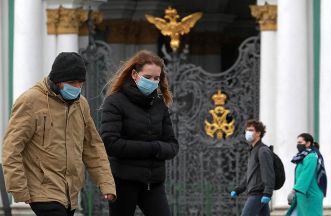 Người dân đeo khẩu trang trên đường phố St. Petersburg hôm 12/5. Ảnh: TASS