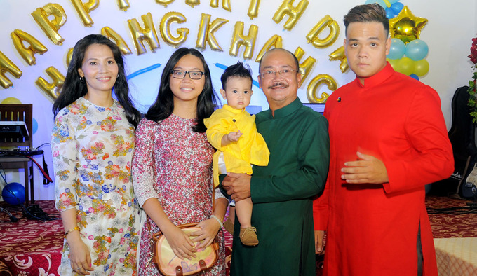 - Lúc vợ biết có thai, tôi và cô ấy đều bất ngờ. Chúng tôi nói chuyện với nhau và nghĩ ở tuổi xế chiều, hai con đầu đã lớn, đáng lẽ cả hai dành thời gian nghỉ ngơi, du lịch, giờ lại ở nhà chăm con mọn. Nhưng con út ra đời là niềm hạnh phúc của gia đình, như món quà trời cho. Tôi cảm giác vừa là cha, là ông vừa là bạn khi chơi đùa, chăm sóc bé. Những khi tôi đi diễn, có cu cậu ở bên, bà xã tôi đỡ buồn. Đổi lại, tôi ngại tuổi mình cao, sợ lo không xuể cho con đến tuổi trưởng thành.