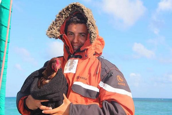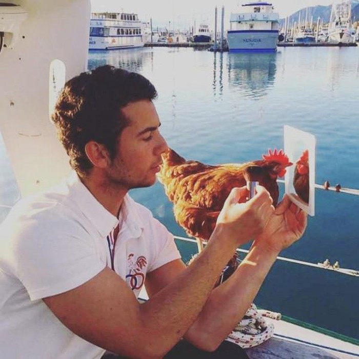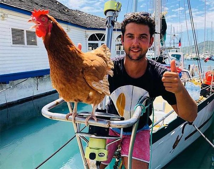Mới đây, cư dân mạng đang truyên tay nhau những tấm hình vi vu khắp nơi của chàng trai trẻ Guirec Soudeé cùng cô bạn gà mái của mình. Với thú cưng lạ, chàng trai nhanh chóng thu hút được sư quan tâm đông đảo của dân mạng. Cô bạn gà mái của anh thậm chí còn biết bơi lội và lướt sóng.