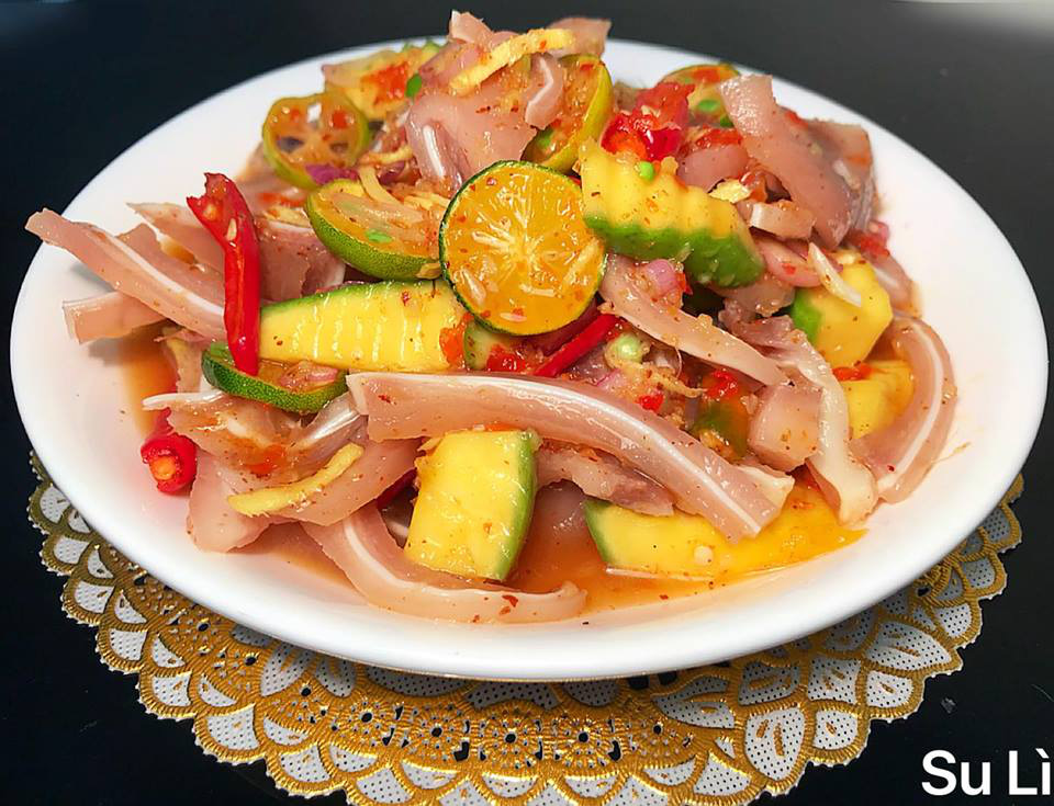 Tai heo trộn sốt ớt chua ngọt, giòn ngon, rực rỡ màu, giàu hương vị. Đảm bảo với bạn cả nhà khen nức nở nhất là vào mùa hè nóng nực này.