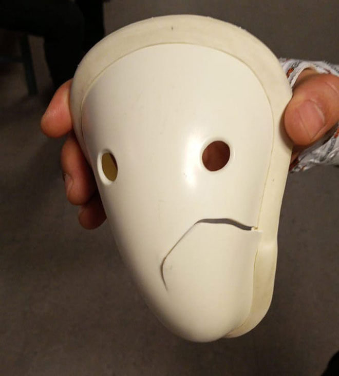 Chỉ sau vài giay khi tiếng còi trận đấu vang lên, 1 võ sĩ MMA đã phải rời sàn ngay lập tức sau khi nhận cú đá vào chỗ hiểm. Ngay sau đó, anh đã được đưa đến bệnh viện để kiểm tra. Miếng bảo hộ ở khu vực chỗ hiểm đã bị nứt đôi sau cú đá uy lực đó.
