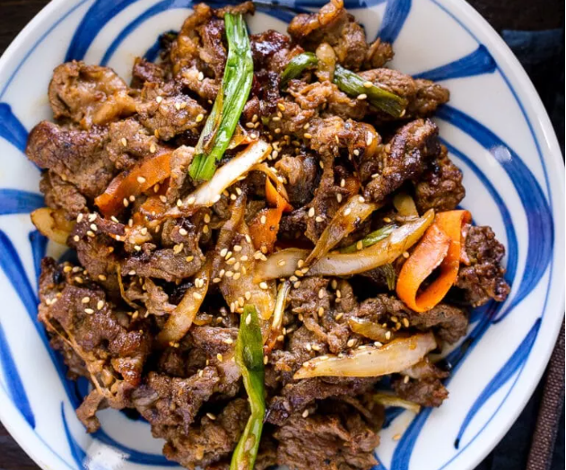 Bulgogi là món thịt bò nướng cổ điển của Hàn Quốc. Đây là món ngon bạn có thể chế biến tại nhà. Miếng thịt bò mềm, màu caramen ăn cùng với salad rau ngọt giòn chắc chắn là món ngon không thể bỏ lỡ. Bạn có thể chế biến món ngon này cùng với nồi chiên không dầu, bếp nướng điện hoặc lò nướng.