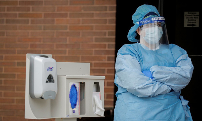 Một y tá làm việc tại điểm xét nghiệm nCoV lưu động ở Manhasset, New York, Mỹ, hôm 6/5. Ảnh: Reuters.