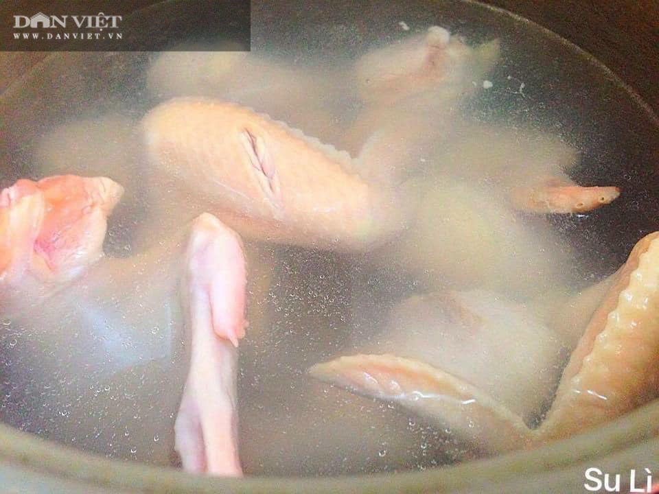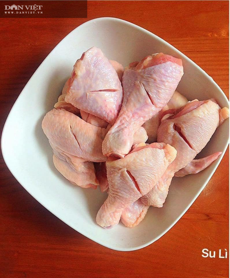 Rửa sạch đùi gà và cánh gà, khía nhẹ rồi nhúng vào nồi nước sôi khoảng 3-4 phút, đổ ra để ráo.