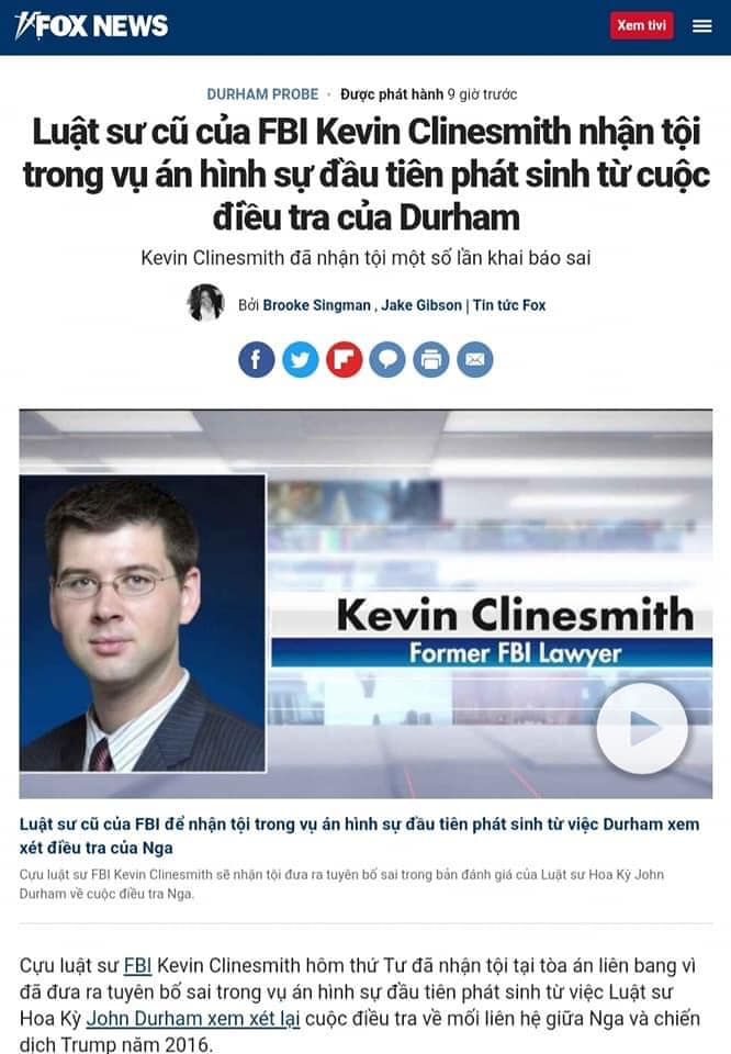 2. Họ sẽ làm gì khi bằng chứng lật đổ Tổng thống hợp pháp của gian đảng Obama - Joe Biden đang bị ông John Durham phanh phui mà tay cựu luật sư FBI vừa nhận tội tại Tòa án liên bang với mức án 05 năm tù ở và tiền phạt 250 ngàn Mỹ kim.