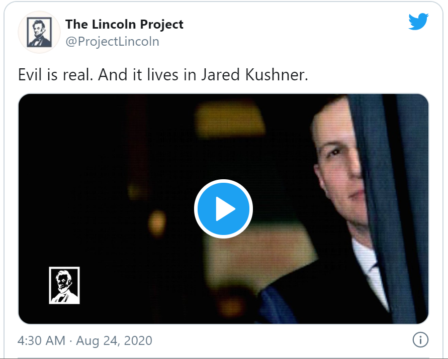 Dự án Lincoln nhắm vào cố vấn cấp cao của Nhà Trắng Jared Kushner trong video Twitter mới nhất của họ khi nhóm tiếp tục nỗ lực làm hỏng các nỗ lực tái đắc cử của Tổng thống Donald Trump.