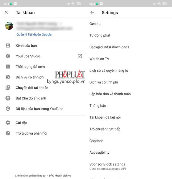 Truy cập vào phần cài đặt của YouTube để xóa lịch sử tìm kiếm. Ảnh: MINH HOÀNG