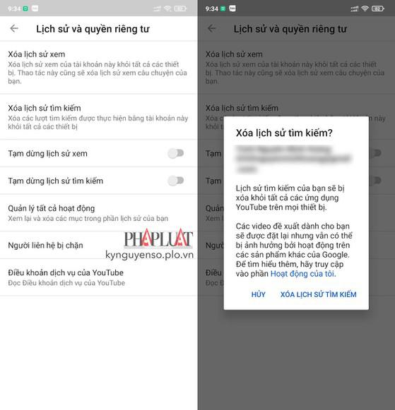 Xóa toàn bộ lịch sử tìm kiếm trên YouTube. Ảnh: MINH HOÀNG