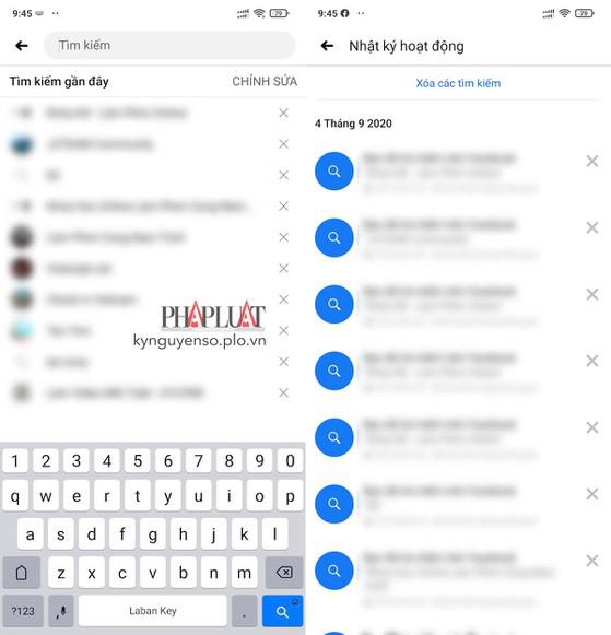 Xóa lịch sử tìm kiếm trên Facebook. Ảnh: MINH HOÀNG