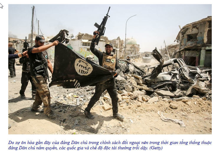 Do sự ôn hòa gần đây của đảng Dân chủ trong chính sách đối ngoại nên trong thời gian tổng thống thuộc đảng Dân chủ nắm quyền, các quốc gia và chế độ độc tài thường trỗi dậy. (Getty)