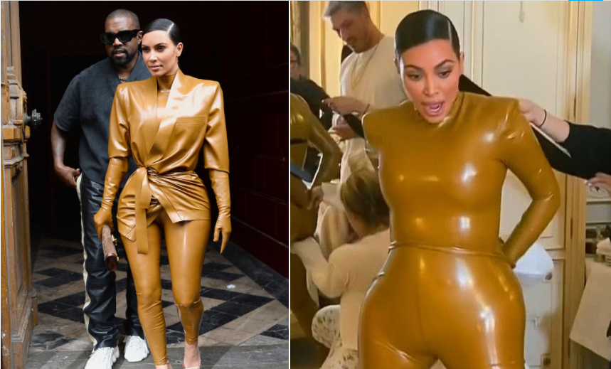 Kim Kardashian la hét khi diện váy bó sát. Cô Kim gây ngạc nhiên vì khác với hình ảnh táo bạo trước truyền thông. Hóa ra ngôi sao truyền hình thực tế cũng gặp nhiều khó khăn khi diện trang phục bó sát bằng chất liệu cao su.