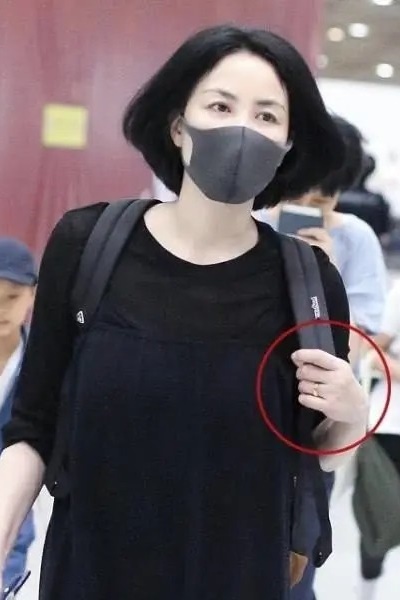 Xuất hiện tại sân bay trước đó, Vương Phi đeo nhẫn đôi với Tạ Đình Phong khiến nhiều khán giả bất ngờ. Nữ ca sĩ hiếm khi sử dụng trang sức, phụ kiện.