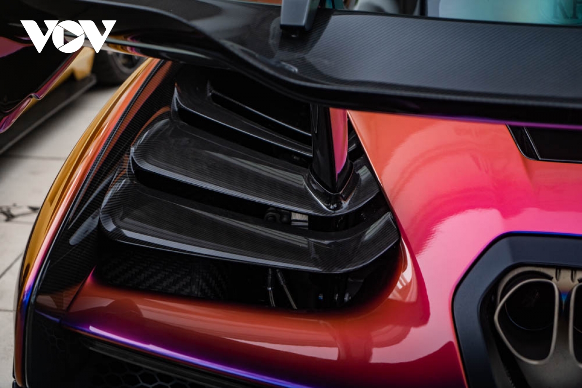 Ngoài ra, một số chi tiết khác ở ngoại thất như gương chiếu hậu, líp cản trước, khoang động cơ, khuếch tán cũng như cánh gió phía sau của xe đều được để trần chất liệu sợi carbon.