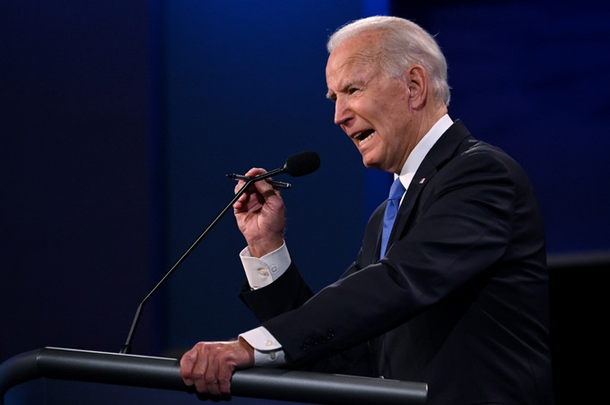 Biden phát biểu trong cuộc tranh luận 22/10. Ảnh: AFP.