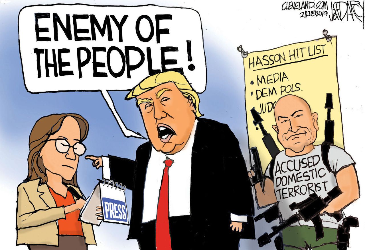 • Các cây bút bình luận trên McClatchy ra bài xã luận cho 30 tờ nhật báo mà họ quản lý, trong đó có tờ Miami Herald, nói rằng các báo hiếm khi có chung một tiếng nói, nhưng nay các báo đang làm vậy. Bài xã luận viết rằng "kẻ thù của nhân dân" là "điều mà Phát xít Đức gọi là Do Thái. Đó là cách mà những người chỉ trích Joseph Stalin bị dán nhãn vào để bị đưa đi hành hình"