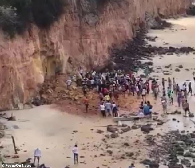 Video được quay lại khoảnh khắc sau khi vách đá sập cho thấy hàng chục người trên bãi biển điên cuồng đào bới bằng tay và dùng gậy gỗ để cố gắng giải cứu các nạn nhân.