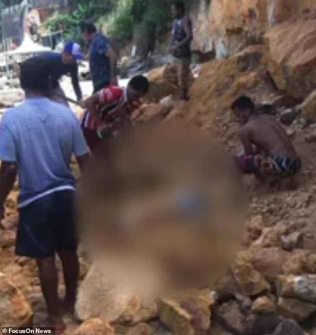 Một người dân địa phương, tên Igor Caetano, người đã chứng kiến toàn bộ thảm kịch và cố gắng giúp đỡ các nạn nhân, nói với kênh truyền hình G1 của Brazil: "Chúng tôi đã bới tung lớp đá vụn cho đến khi tìm thấy người cha, và sau đó chúng tôi tìm thấy người mẹ và đứa trẻ. Cô ấy đang ôm đứa bé. Có vẻ như cô ấy cố gắng bảo vệ con trai mình theo bản năng. Các vết thương của họ rất nặng bị khối đá lớn đè lên người".