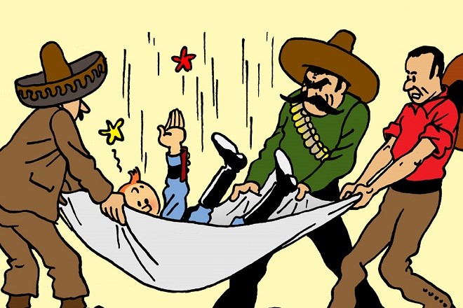 Câu truyện kể về một người đi chợ mua được một con heo. Trên đường về, trời nắng quá nên anh ta định ghé vào quán bên đường uống nước thì gặp một chú lính lệ. Chú lính lệ hỏi anh ta rằng con heo giá bao nhiêu? Anh ta thấy thầy quyền cũng chú ý đến mình và con heo nên liền lễ phép trả lời rằng con heo có giá hơn quan. Tên lính liền tát anh ta một bạt tai rồi mắng bảo anh ta láo, dám nói heo hơn quan. Anh ta liền liền bảo rằng anh chỉ lỡ lời thôi. Sau một hồi van lạy mãi thì chú lính mới tha cho.