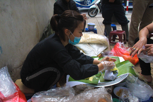 Quán xôi gần 30 tuổi ở vỉa hè Hà Nội khiến thực khách “tṛn mắt” ngạc nhiên bởi màn chốt đơn và gói xôi nhanh như “chớp” của chủ quán.