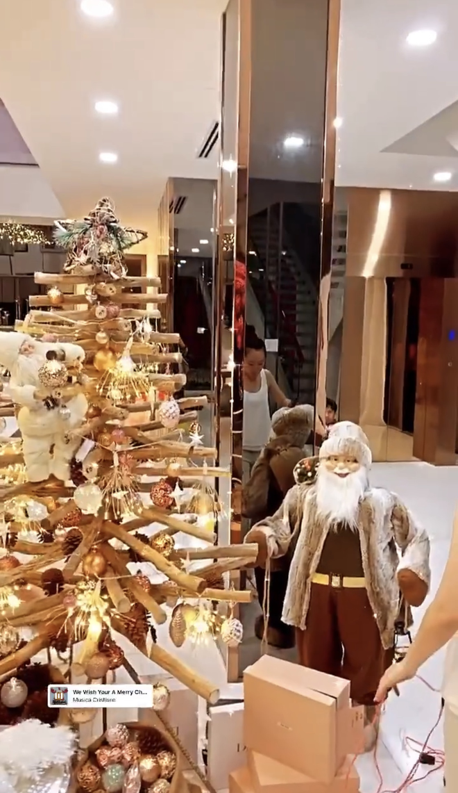 Ngọc Trinh đã bắt đầu rục rịch chuẩn bị cho Giáng sinh. Hình ảnh cây thông dát vàng khiến người nhìn choáng ngợp. Hiện tại, quá trình trang trí vẫn chưa hoàn thiện.