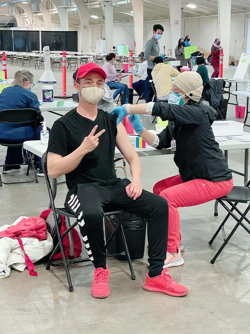 "Có lẽ tôi may mắn khi được chích ngừa vaccine Covid-19. Mong mọi người cũng sẽ sớm được tiêm vaccine để đẩy lùi dịch bệnh", anh chia sẻ.