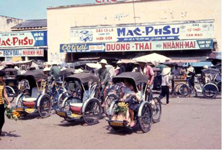 Biển quảng cáo dầu Mac Phsu ở chợ An Đông, Chợ Lớn, năm 1967 (nguồn: Donald Jellema Collection – Vietnam Center and Archive).