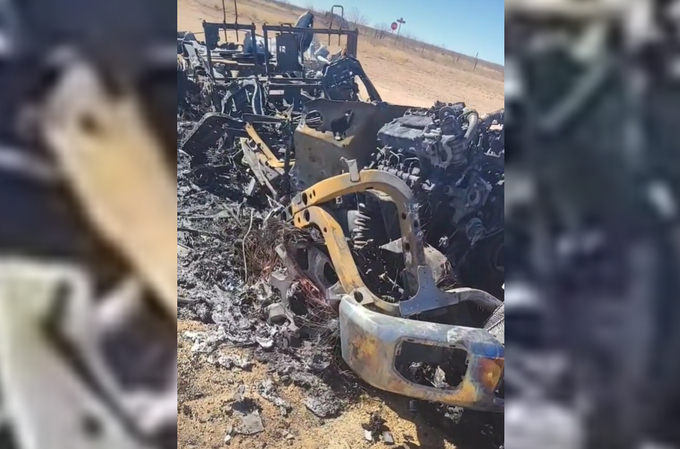 Những gì còn lại của chiếc Ford Super Duty sau vụ cháy. Ảnh từ video