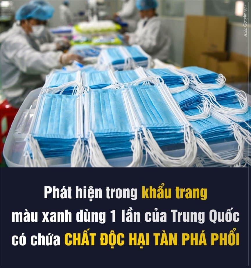 Default Phát hiện trong khẩu trang màu xanh dùng 1 lần của Trung Quốc có chứa chất độc hại tàn phá phổi