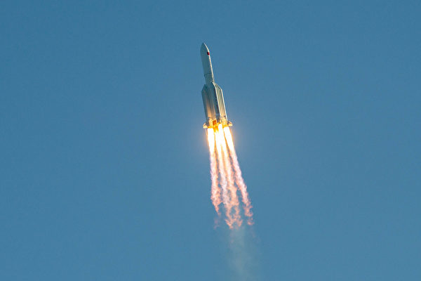 H́nh ảnh tên lửa đẩy Long March 5B của Trung Quốc. (STR/AFP qua Getty Images)