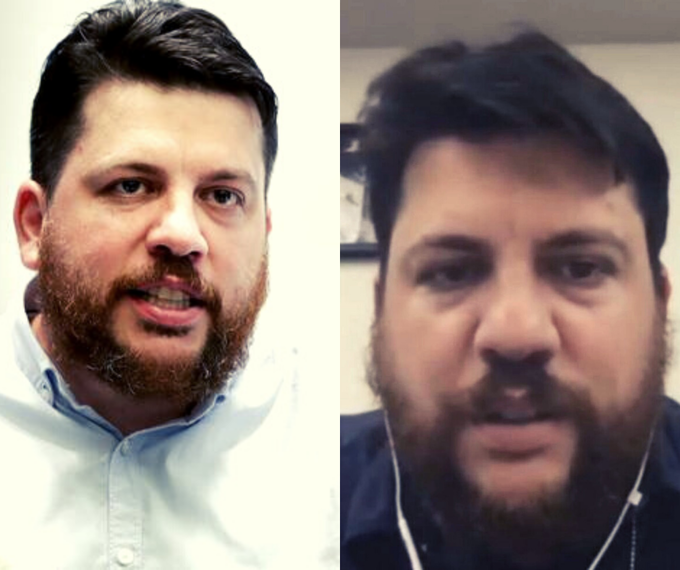 Ảnh thật của Leonid Volkov (trái) và ảnh chụp màn hình được cho là sản phẩm của deepfake trong loạt video lừa đảo các chính trị gia châu Âu. Ảnh: Rihards Kols.